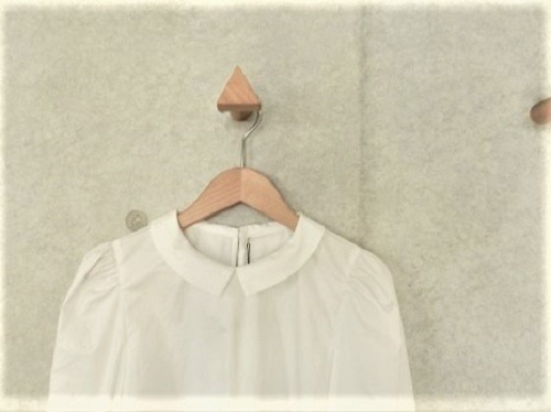 きゅっと詰まった襟元と、ふんわりとしたシルエットのパフスリーブが