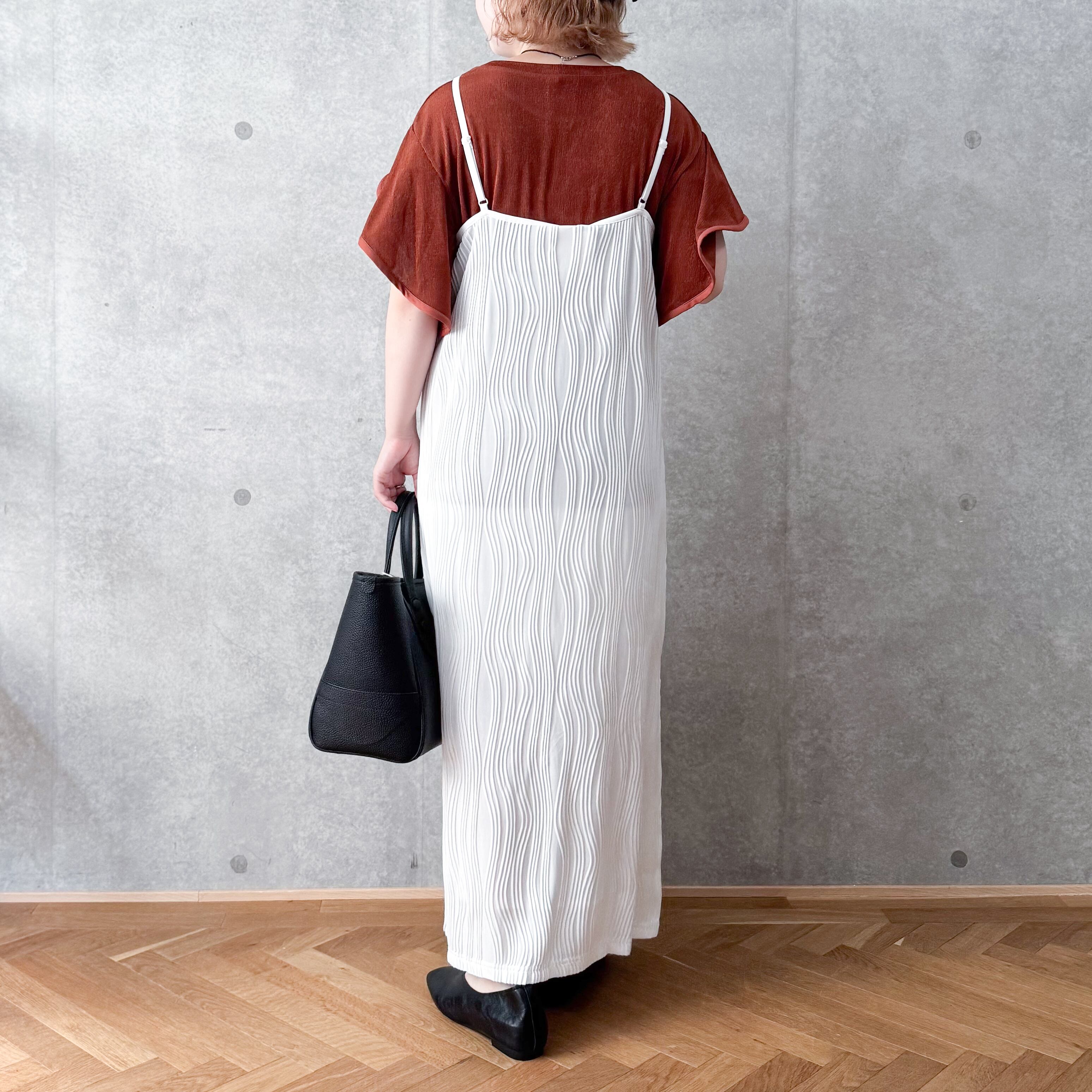 ウェーブデザインのプリーツがポイントのキャミワンピース。