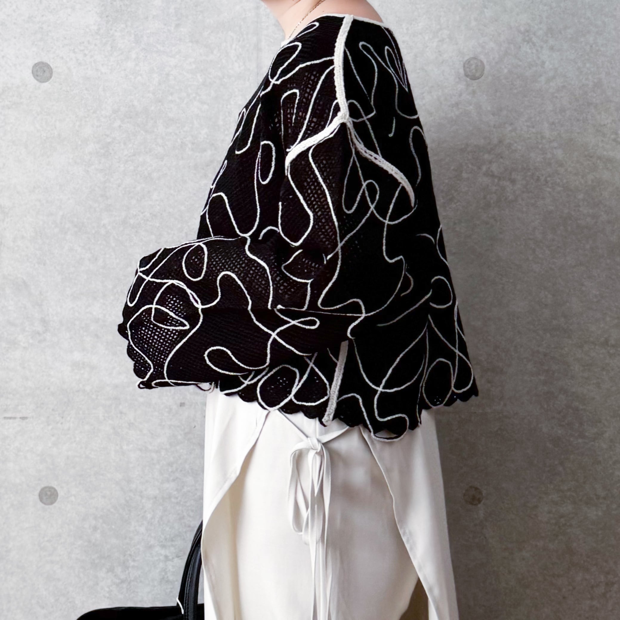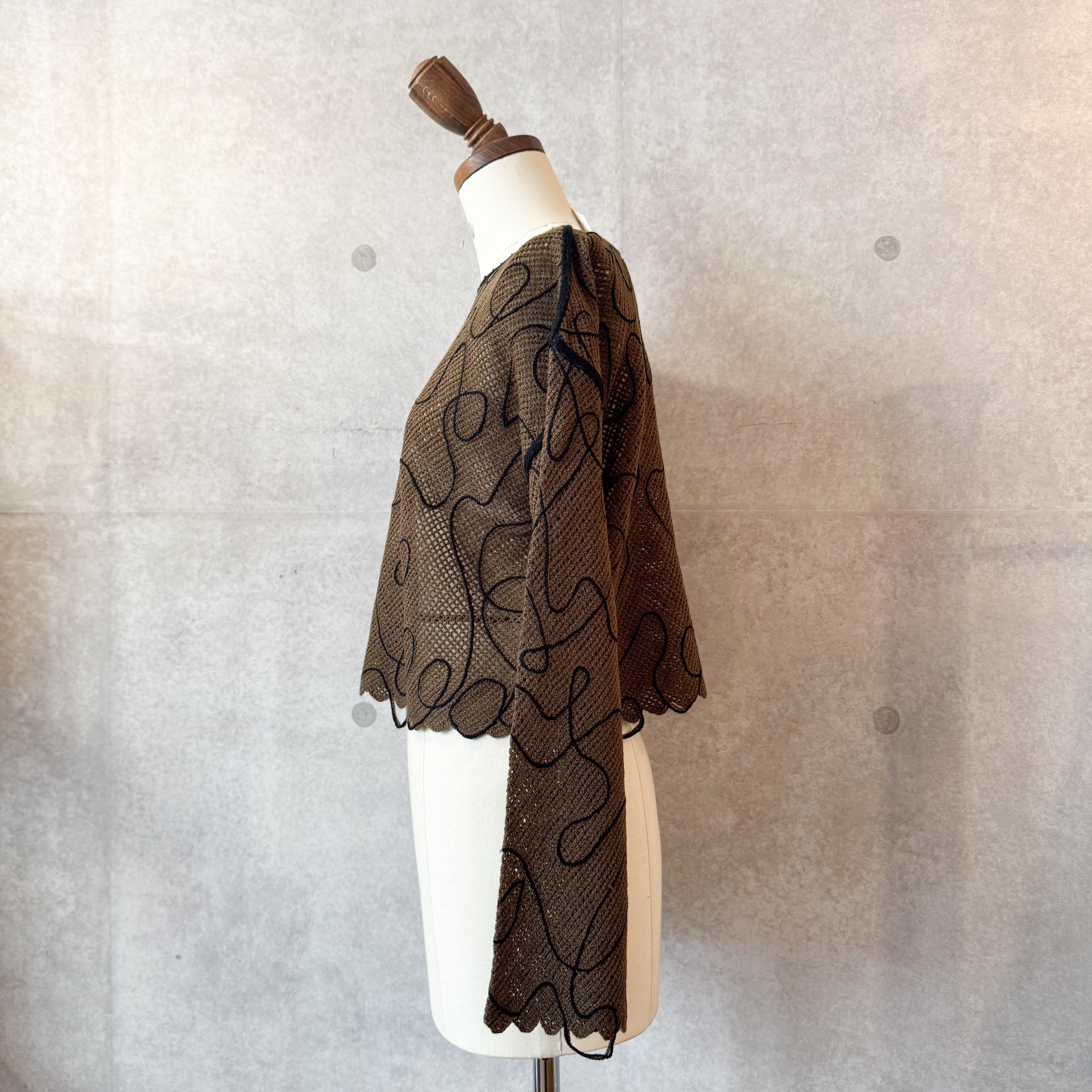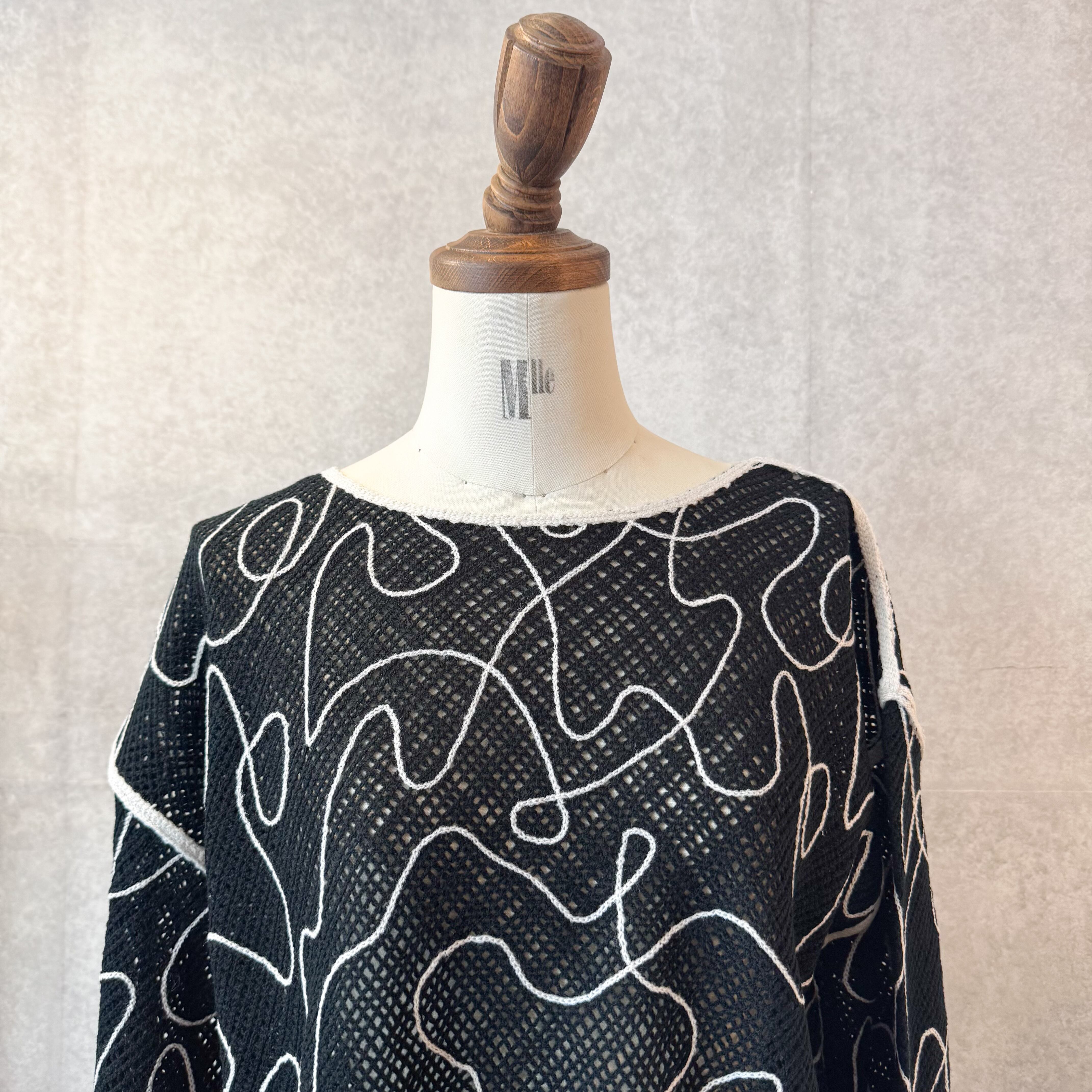 コード刺繍がポイントのメッシュニット。