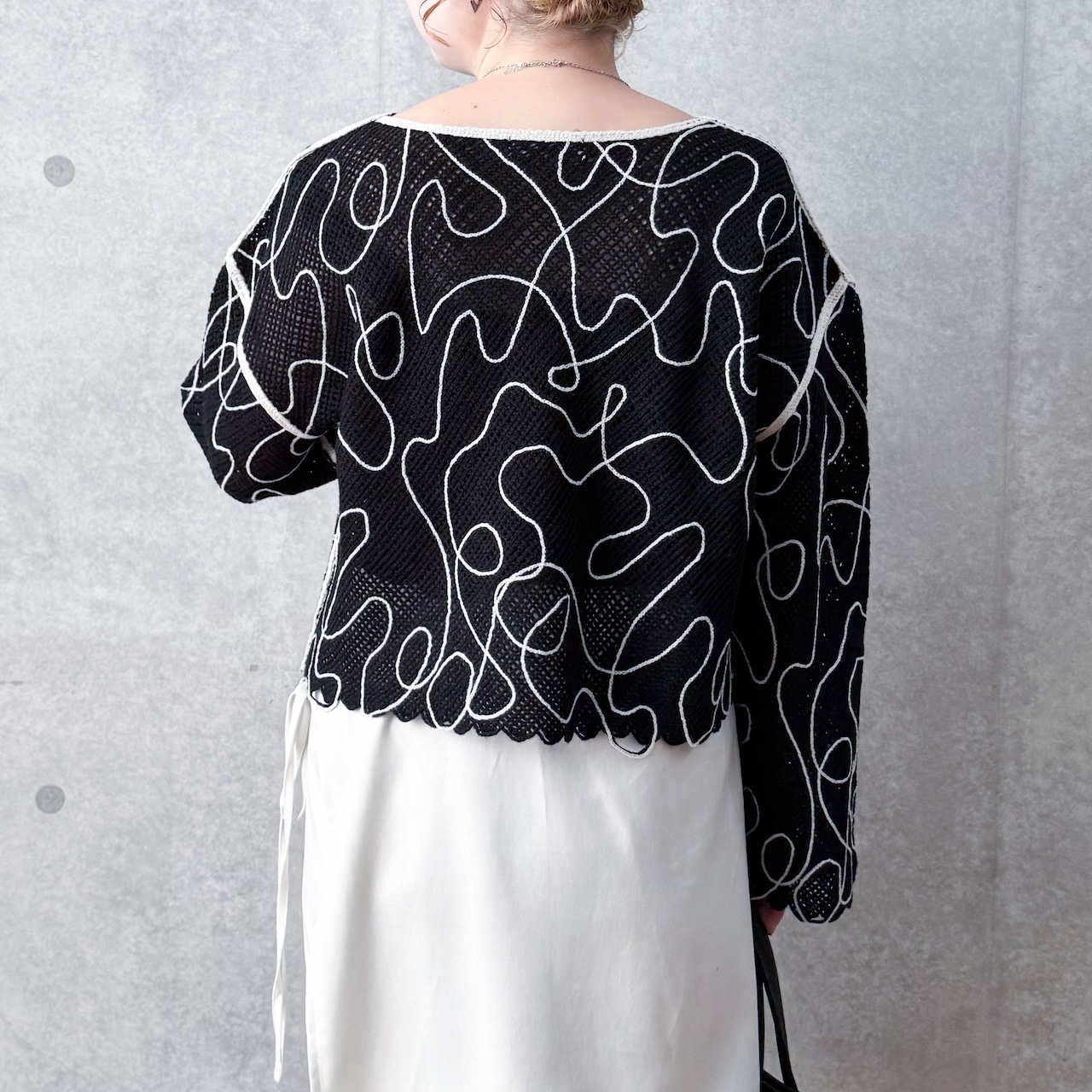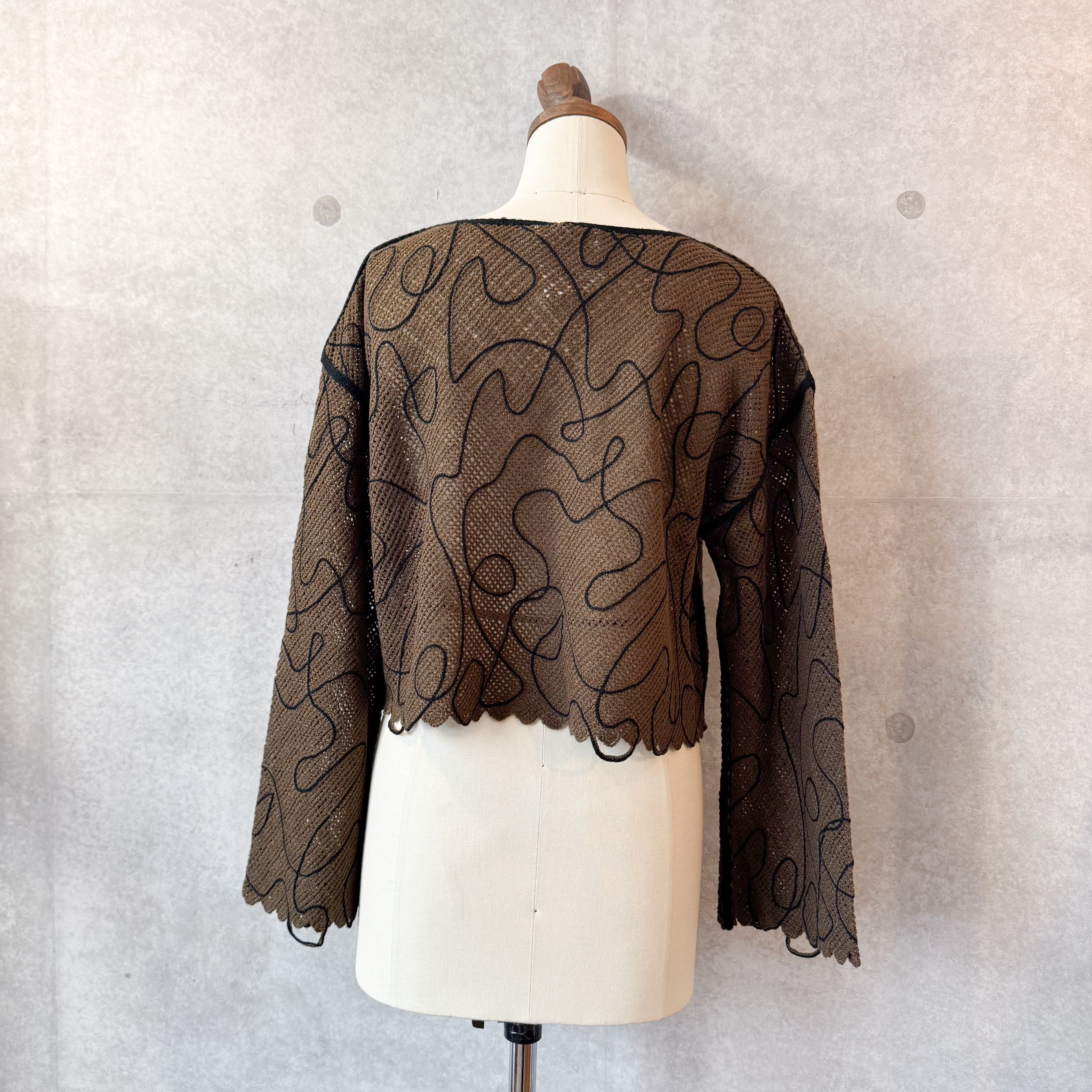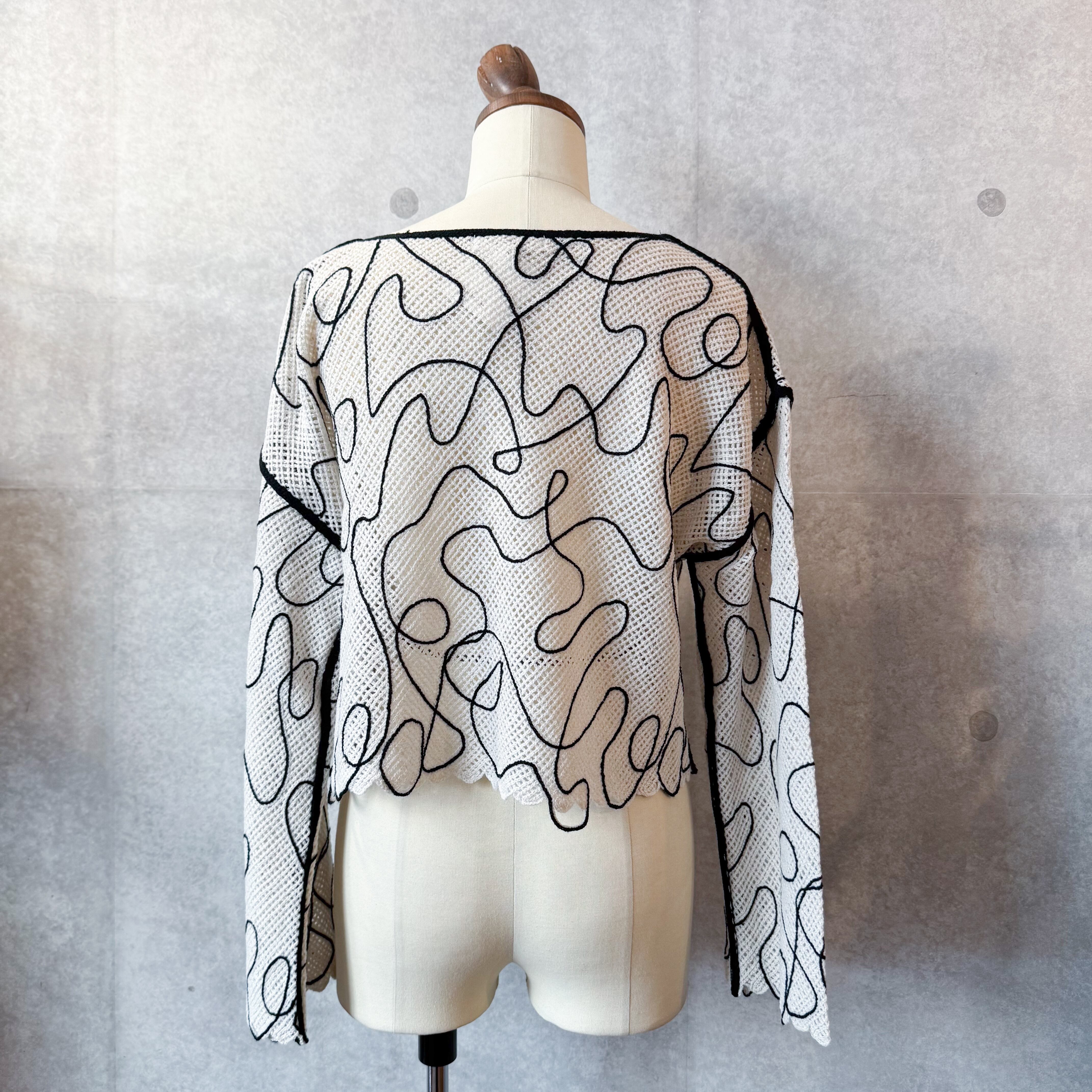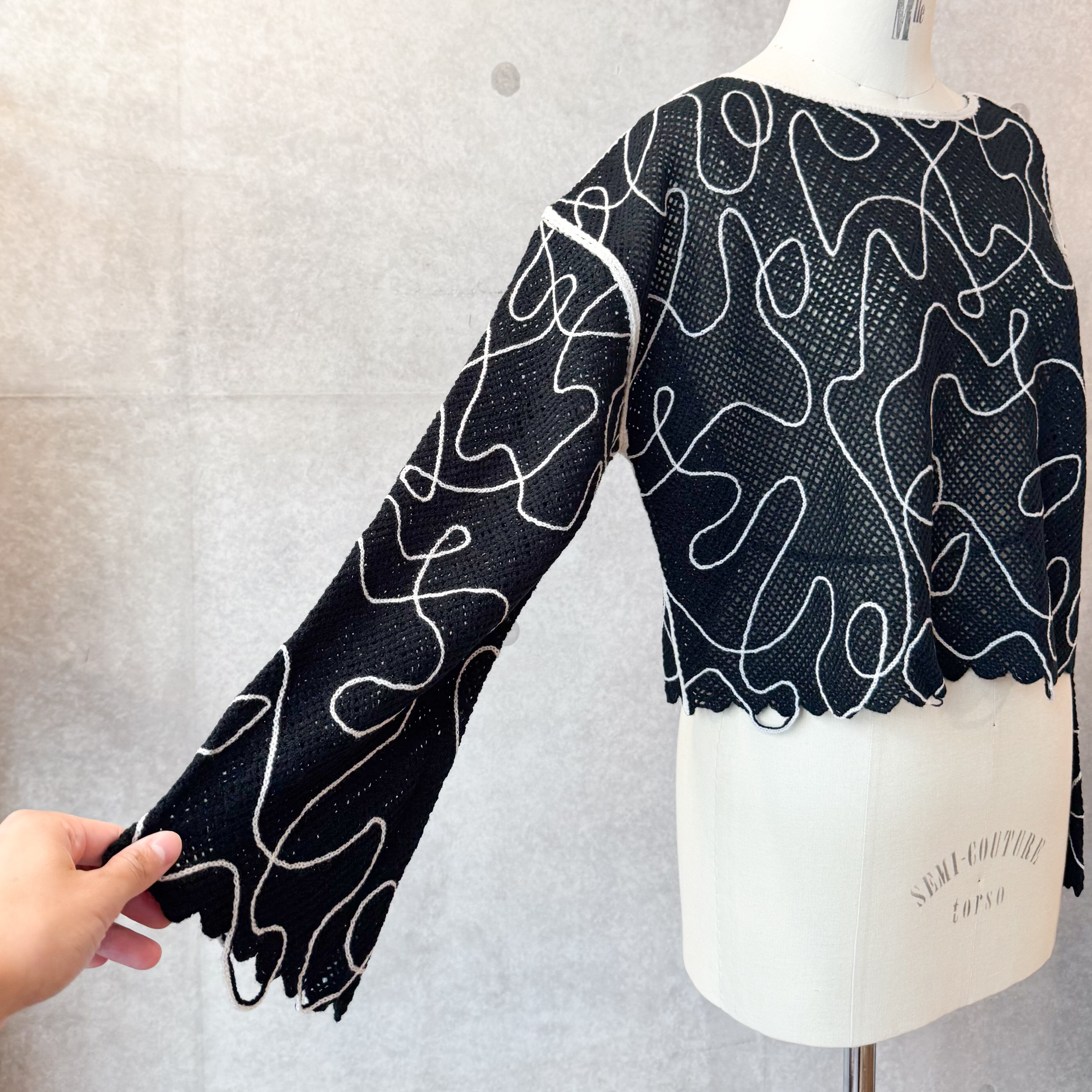 コード刺繍がポイントのメッシュニット。