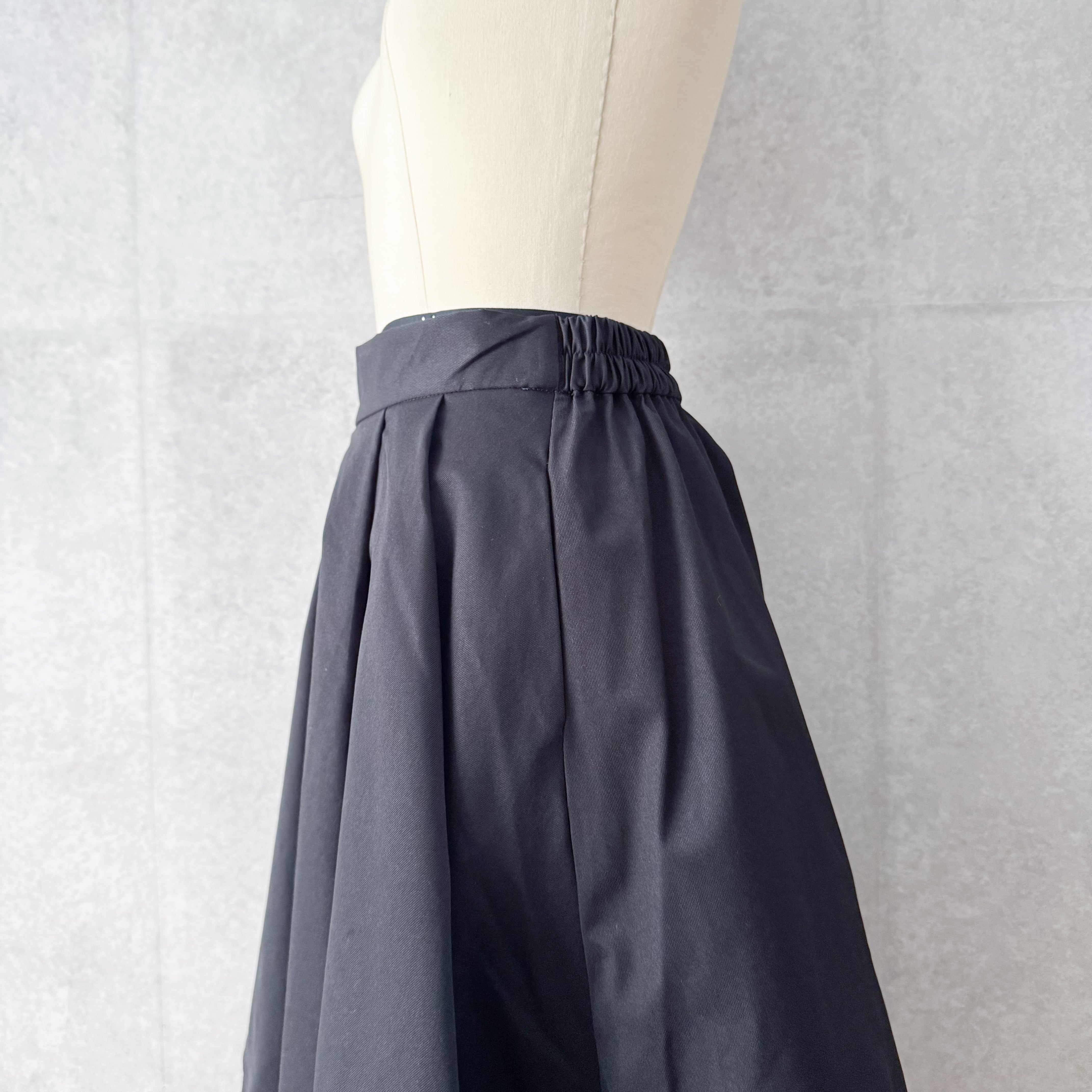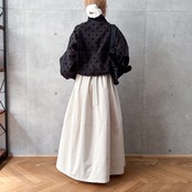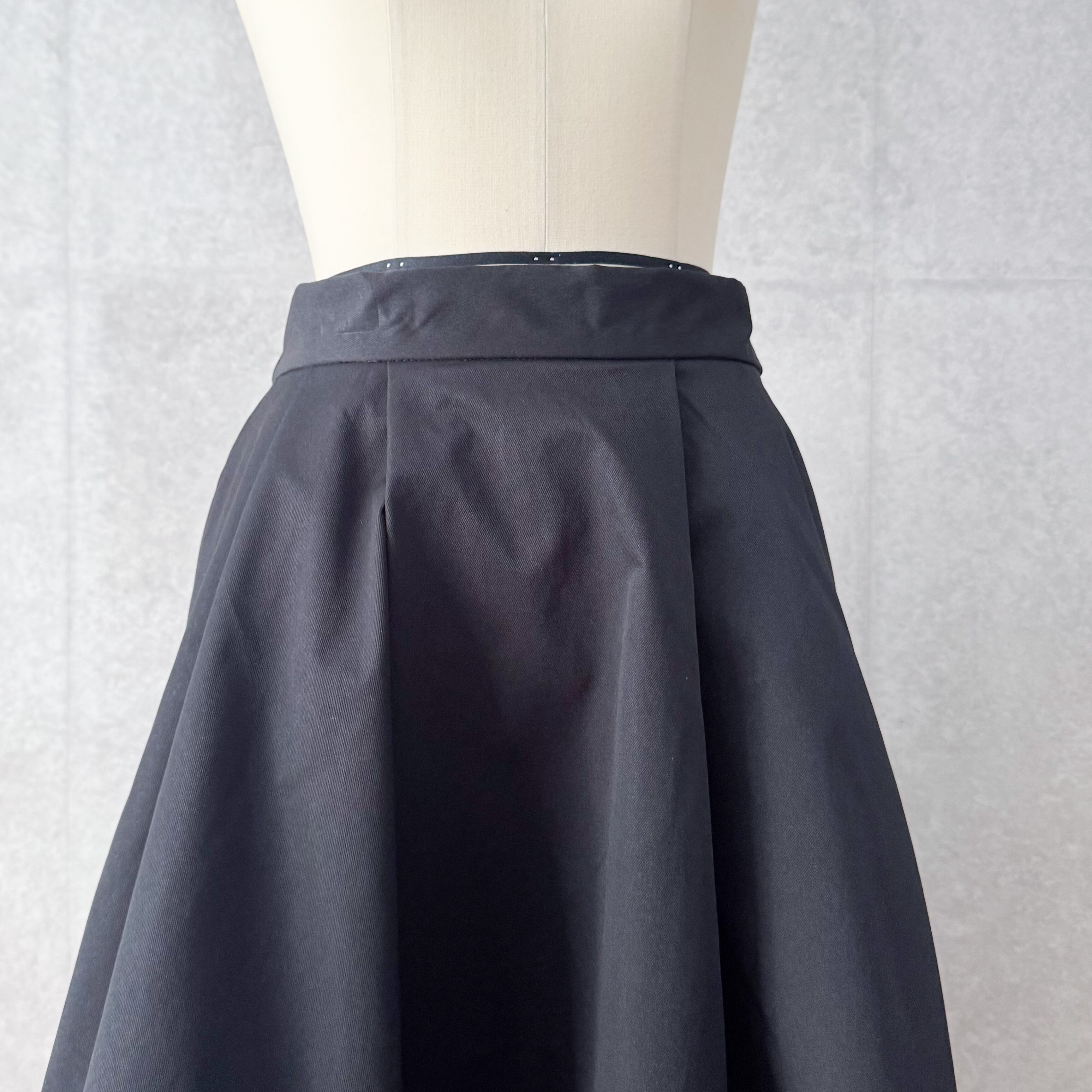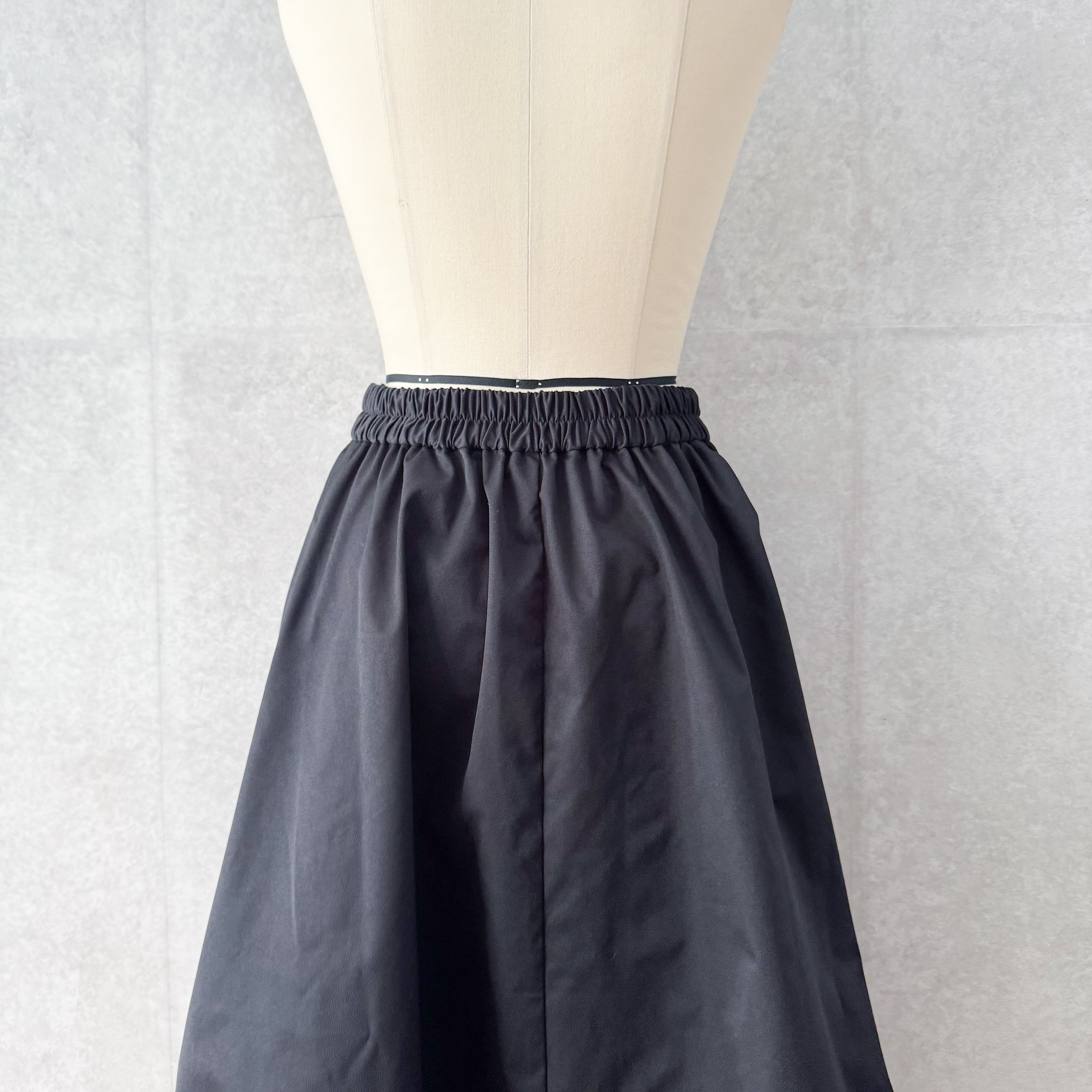 程よく広がるAラインシルエットと切り替え部分から少し丸みのある形になっていて細部までデザイン性の高い一着です。ポケット付きです。