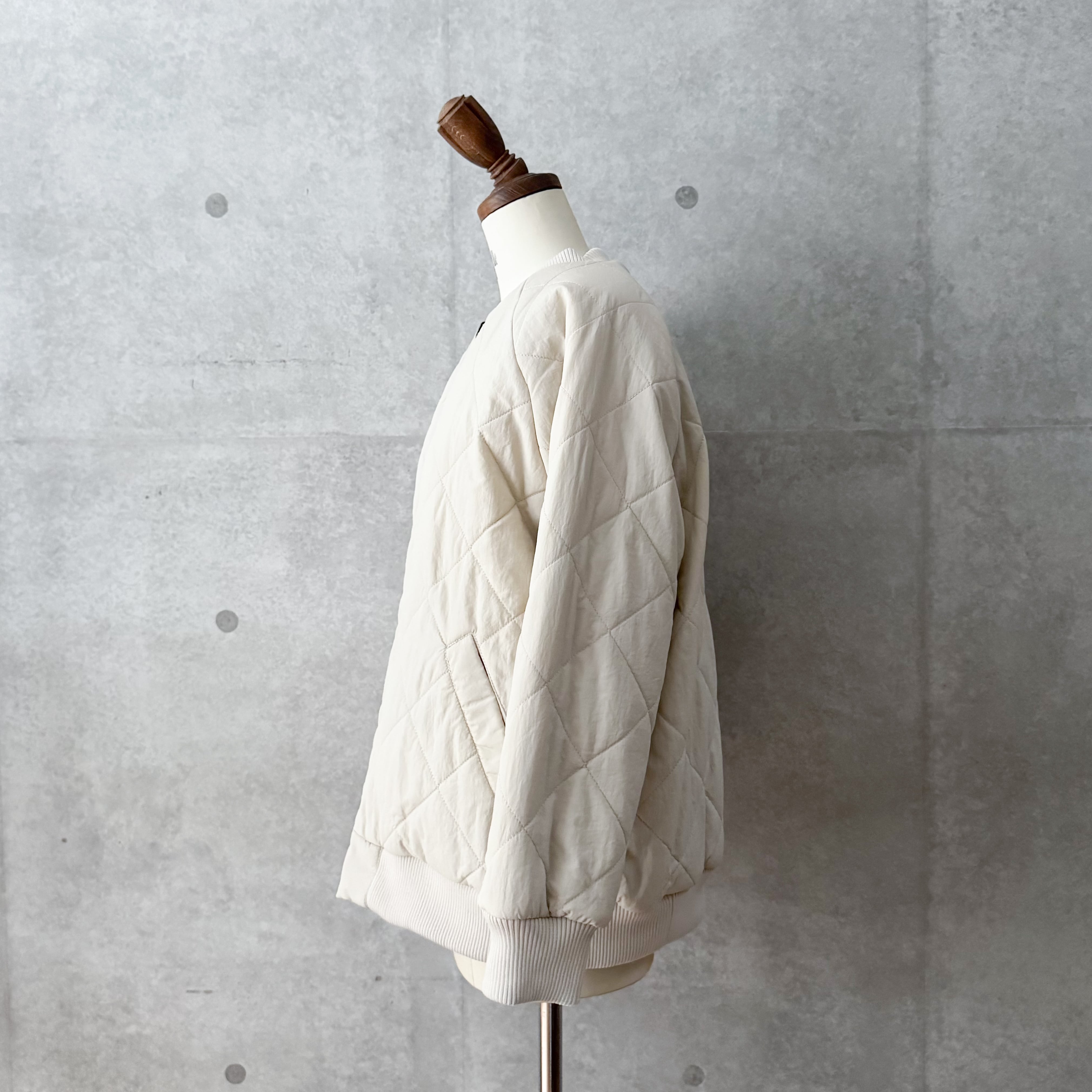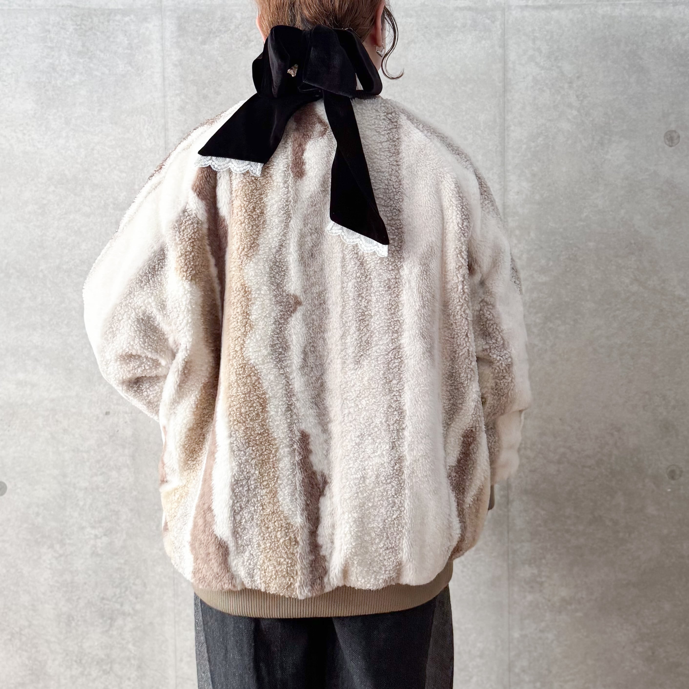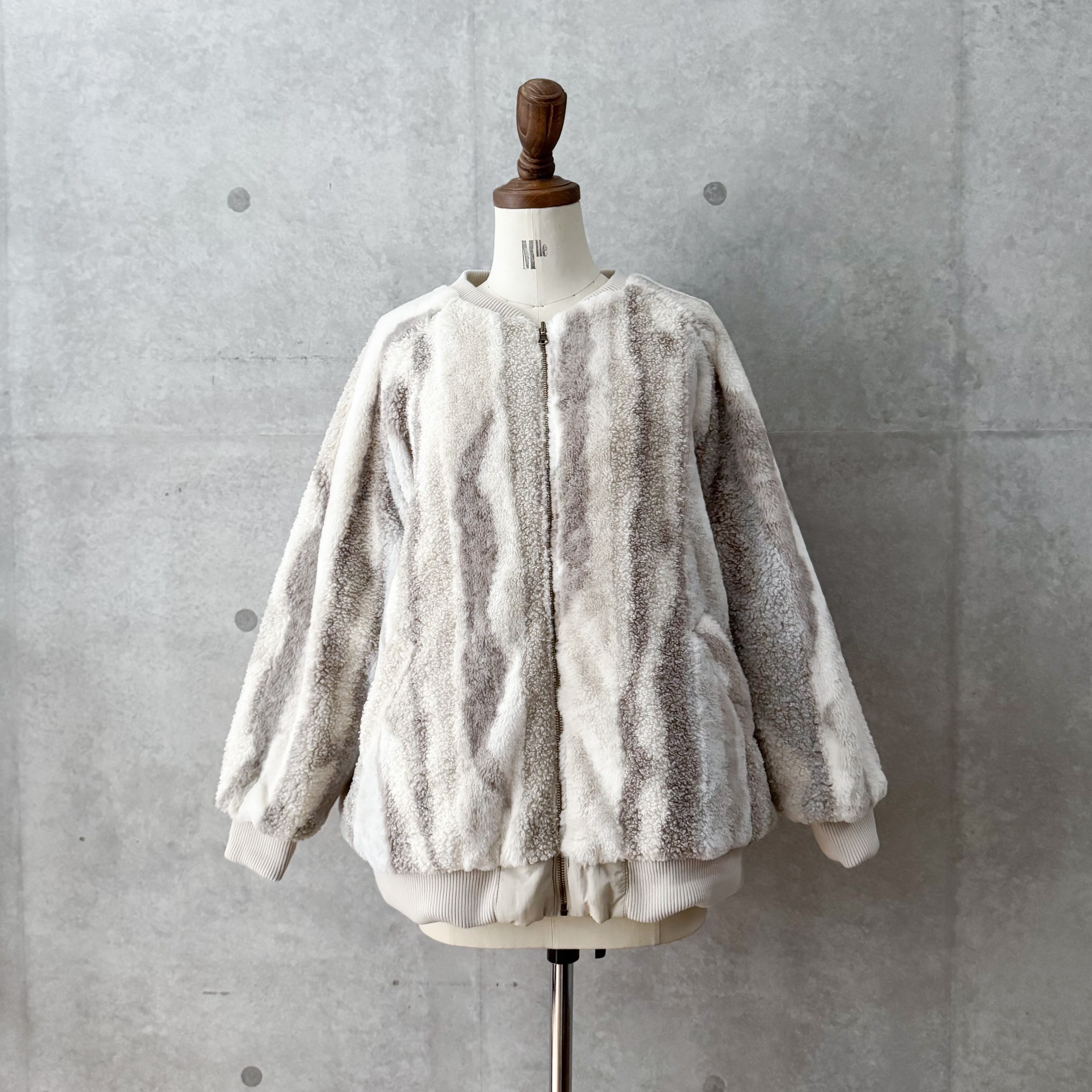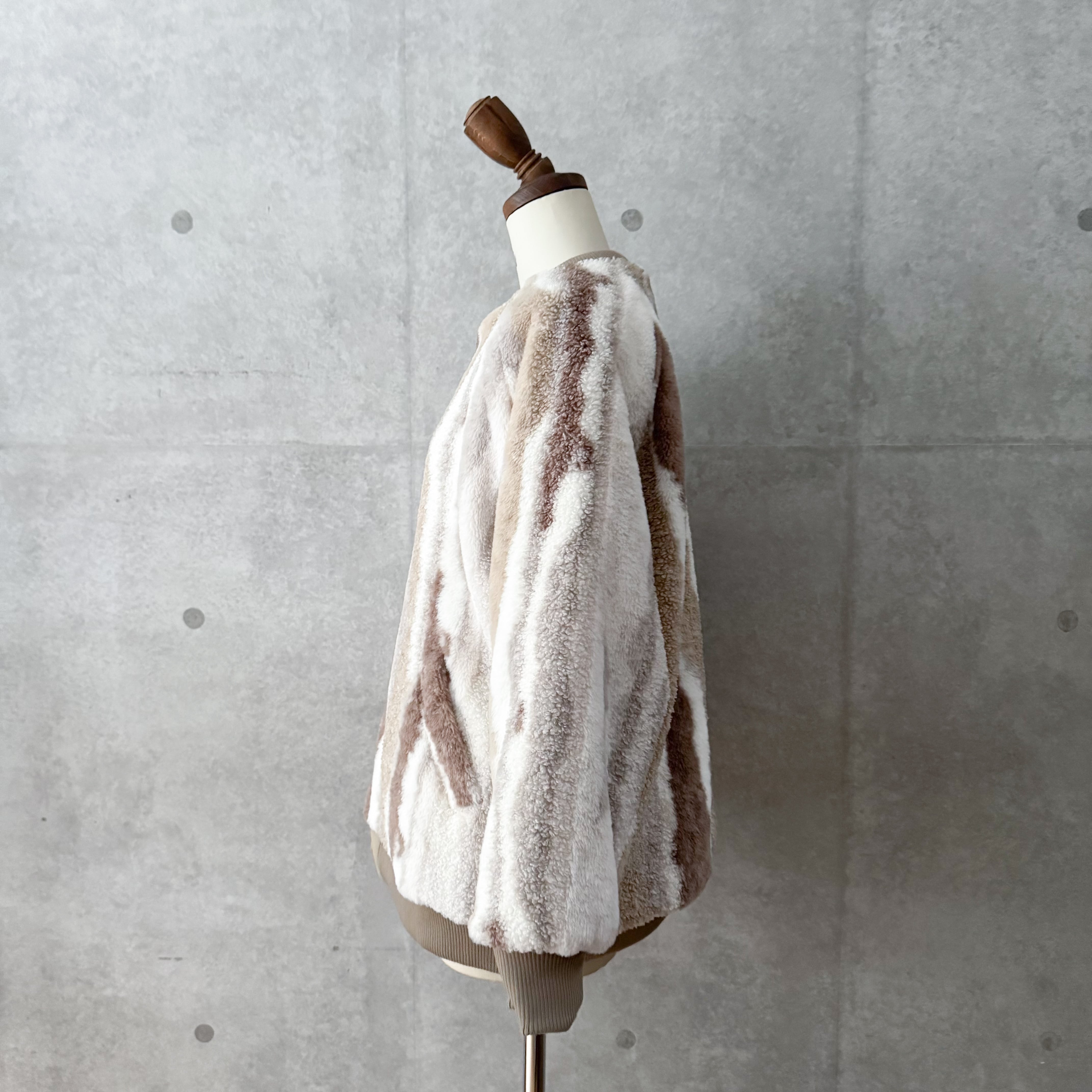 マーブル柄が目を惹くキルティングボアコート。