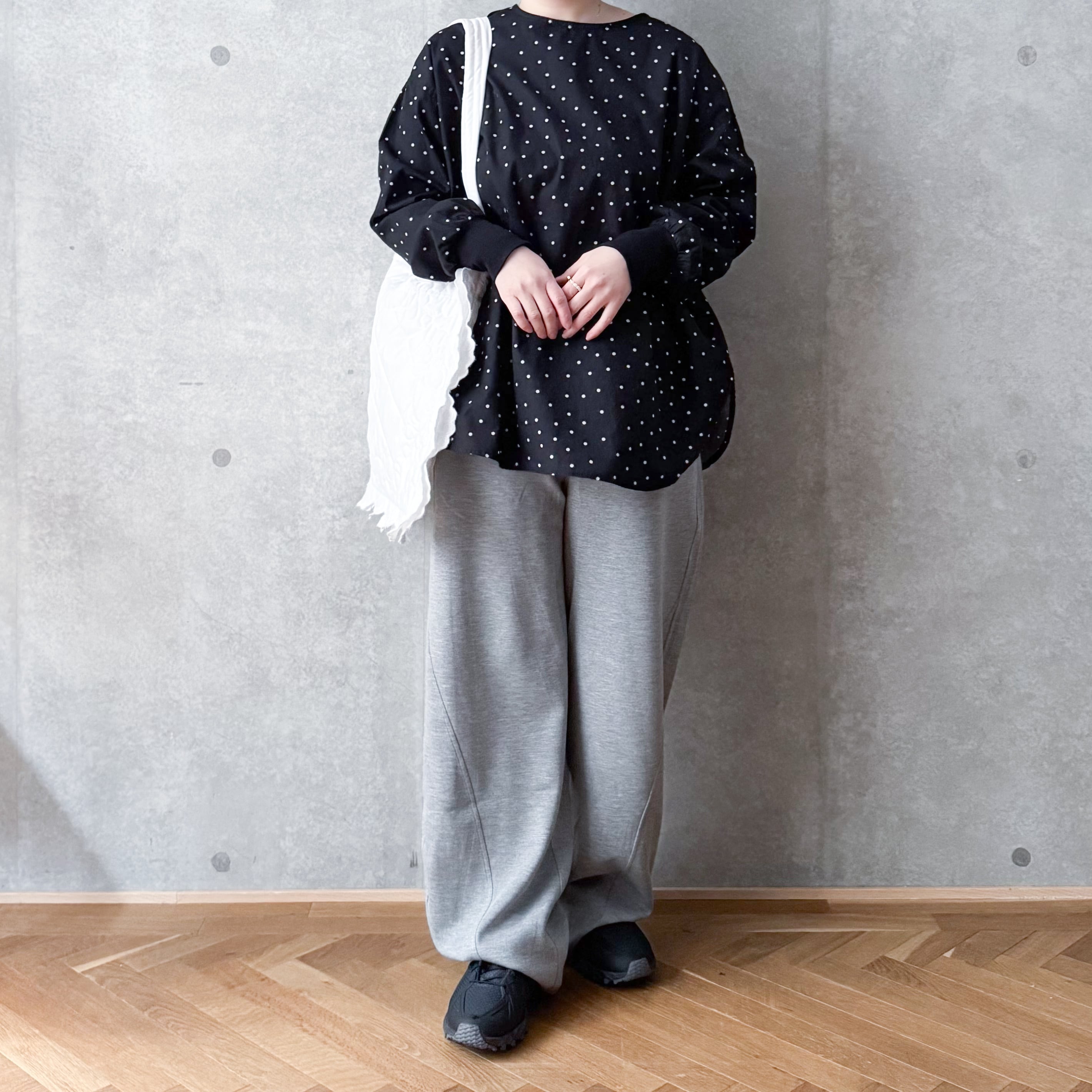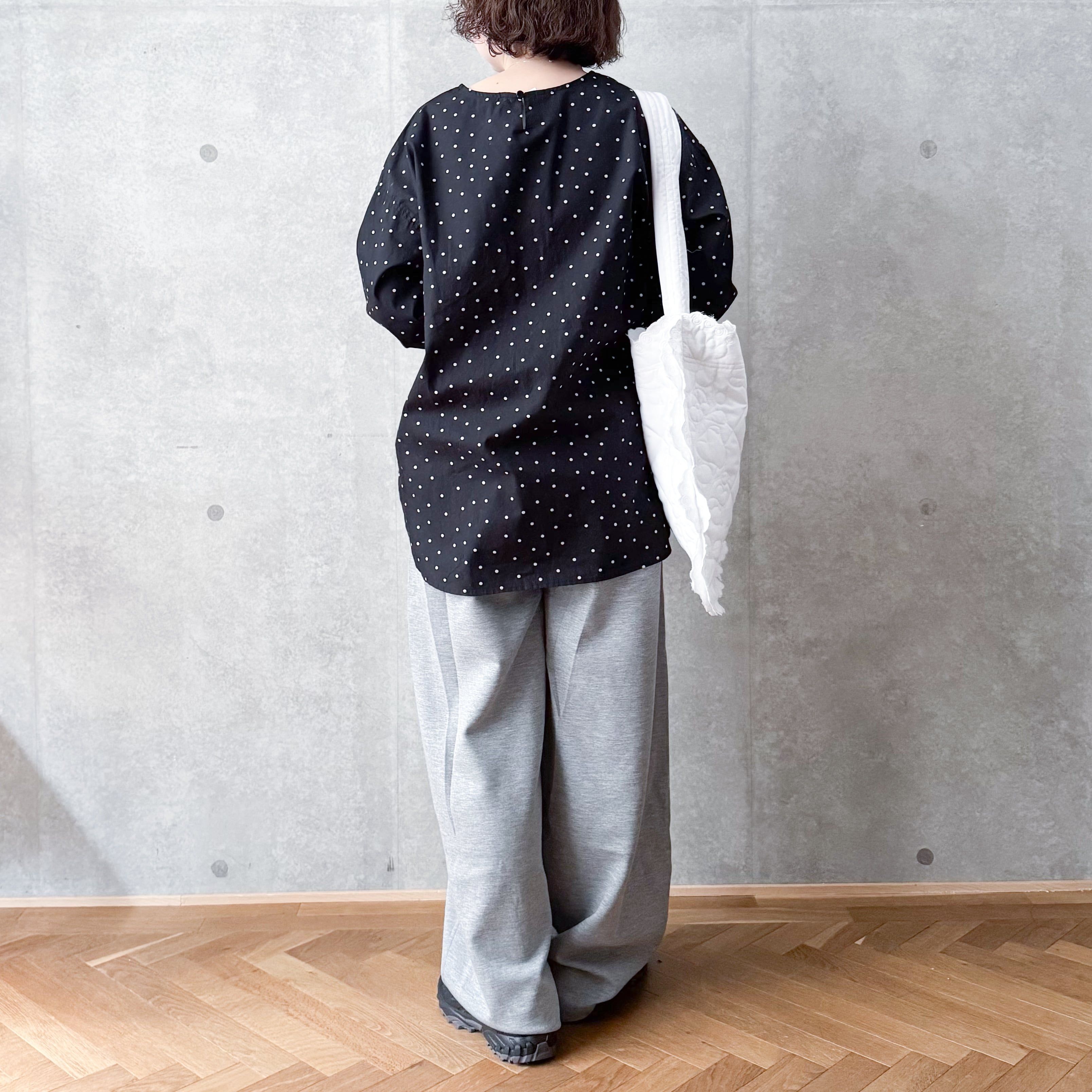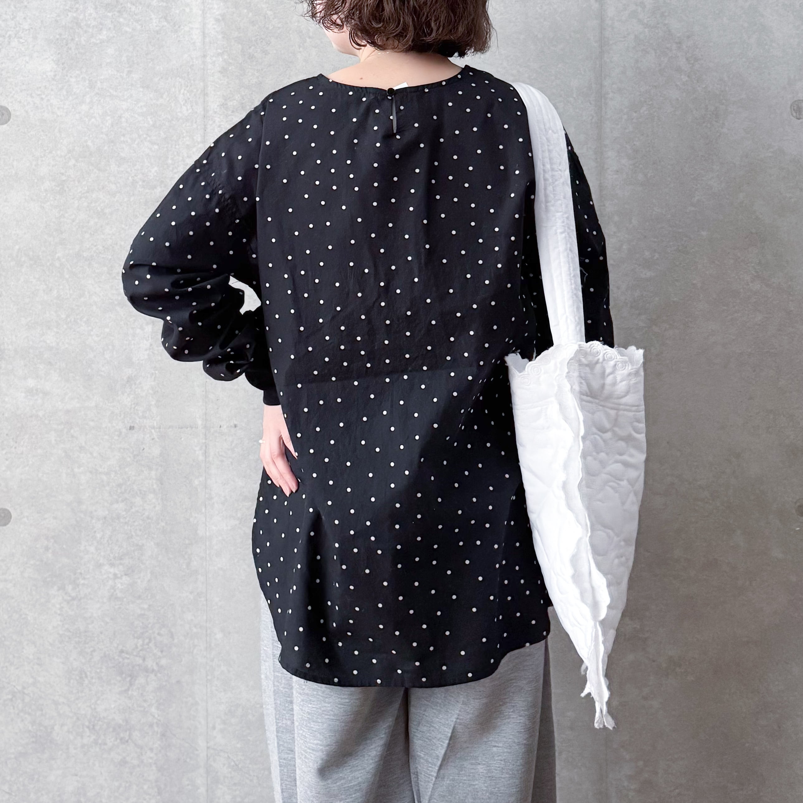 ドット袖リブブラウス