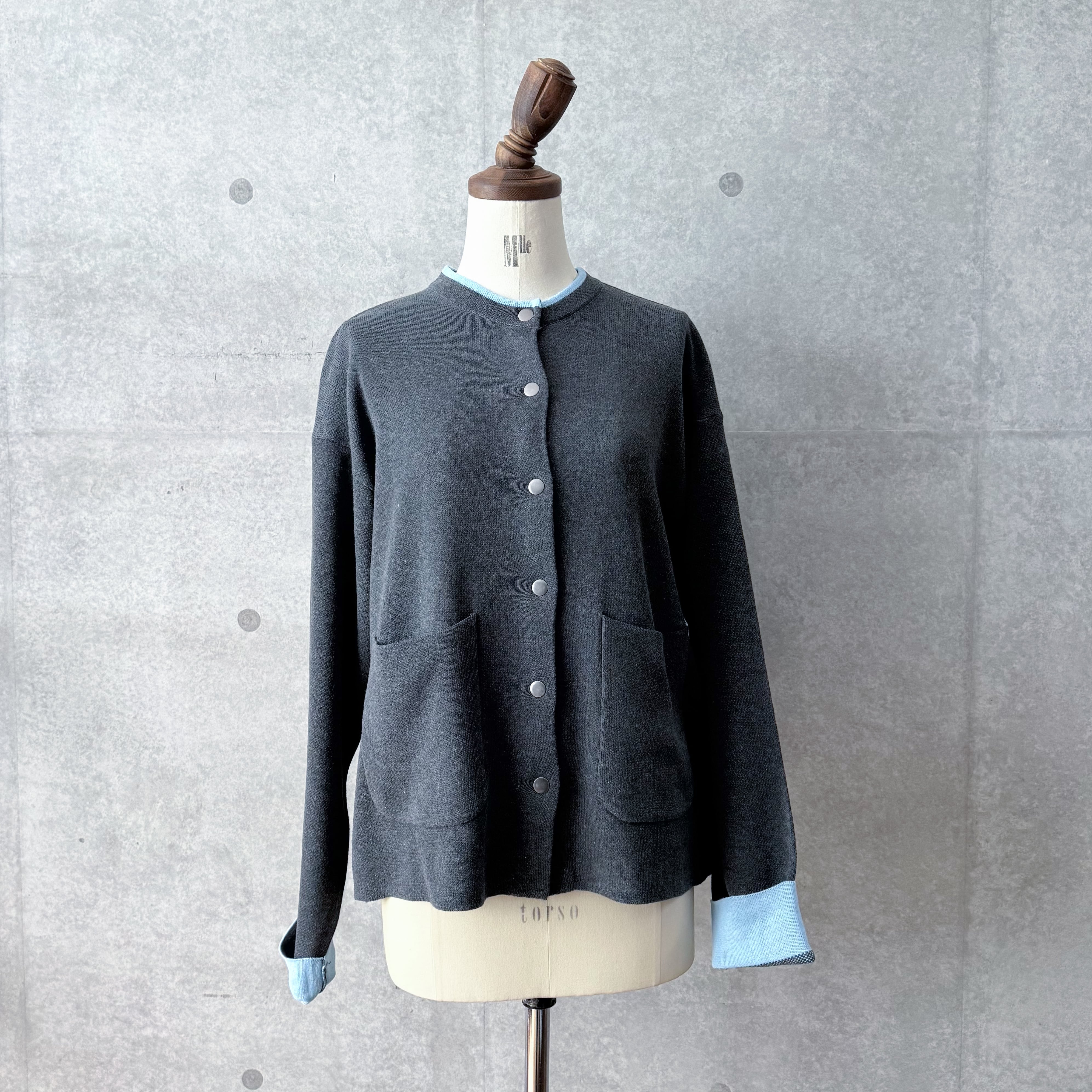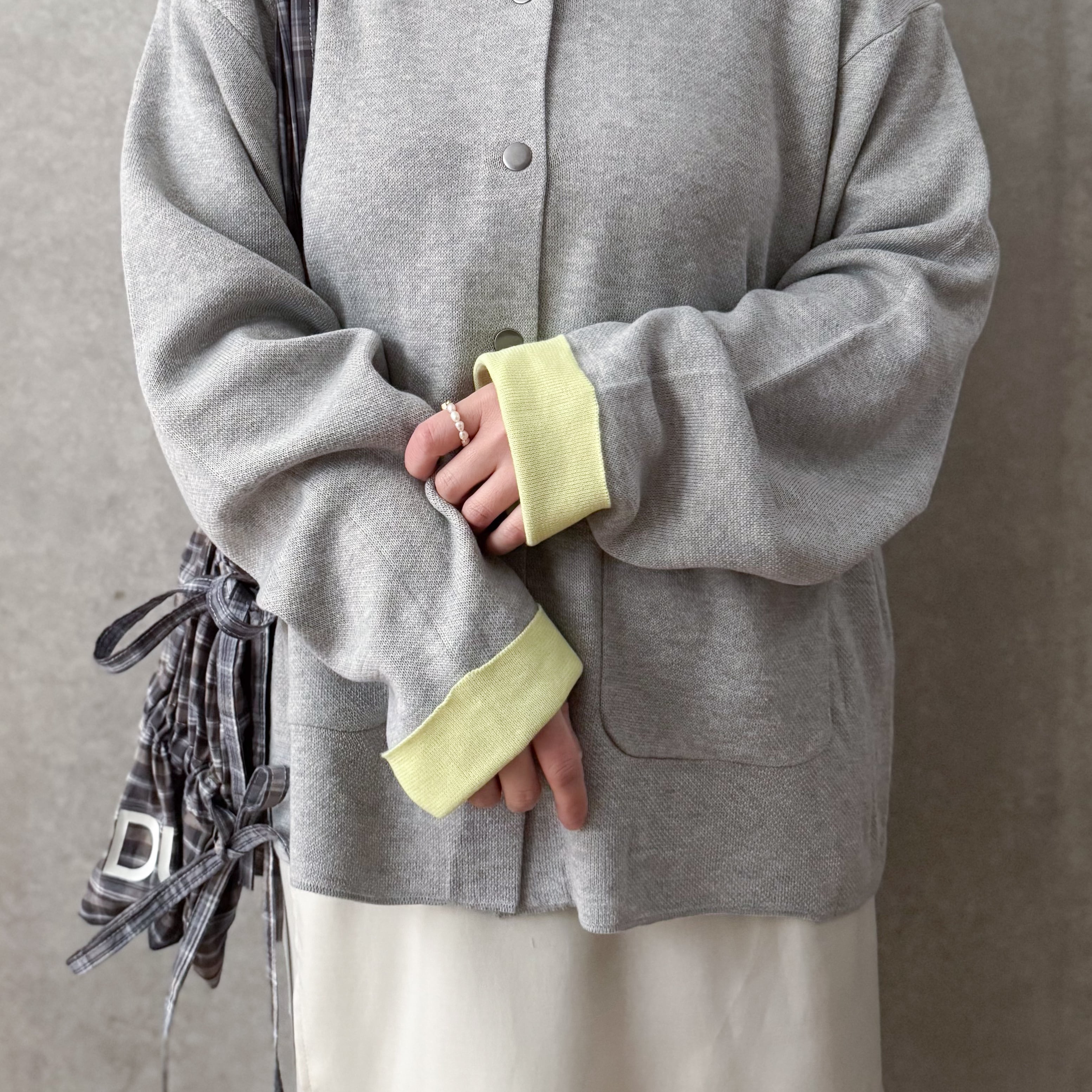 バイカラースナップボタンカーディガン