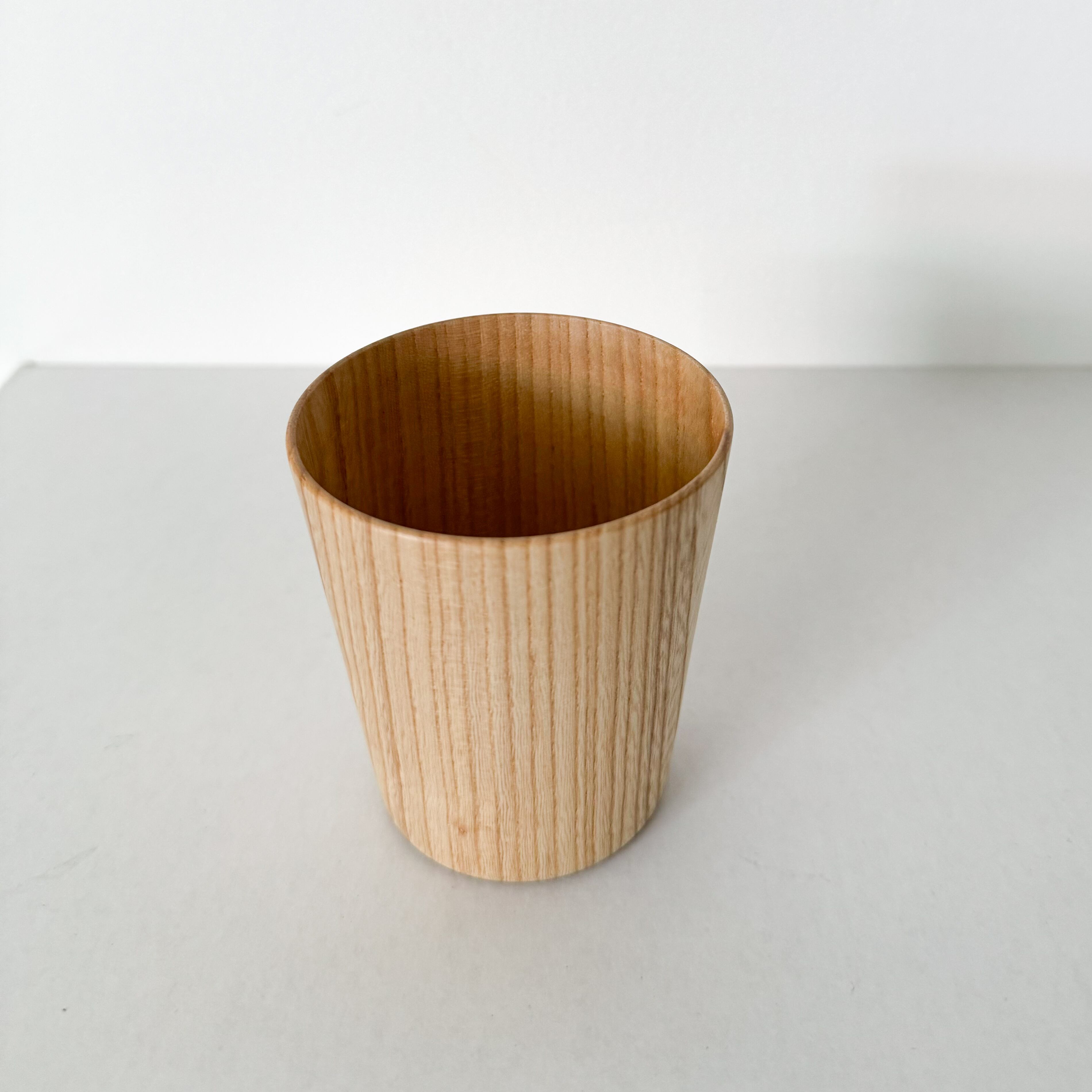 北海道の「セン」の木を、ロクロでひいてつくった“木の器の飲み物”を主としたシリーズです。灯りにかざすと透けるような薄さからKamiと名付けられました。